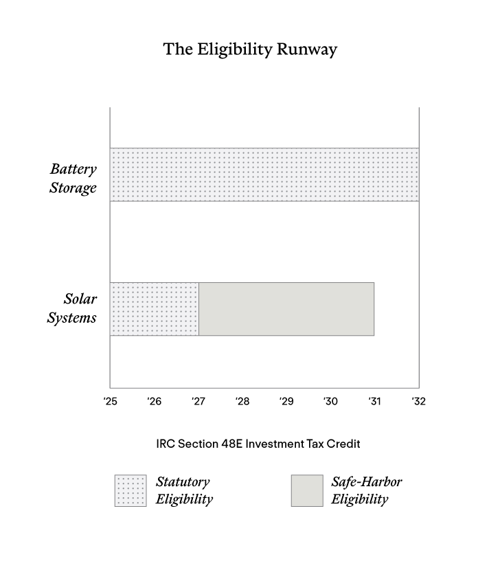 - Photovoltaic solar (“solar”) and battery energy storage system (“BESS”) assets are eligible for Federal investment tax credits (“ITC”) and depreciation deduction per Section 48 and its successors of the US Internal Revenue Code.